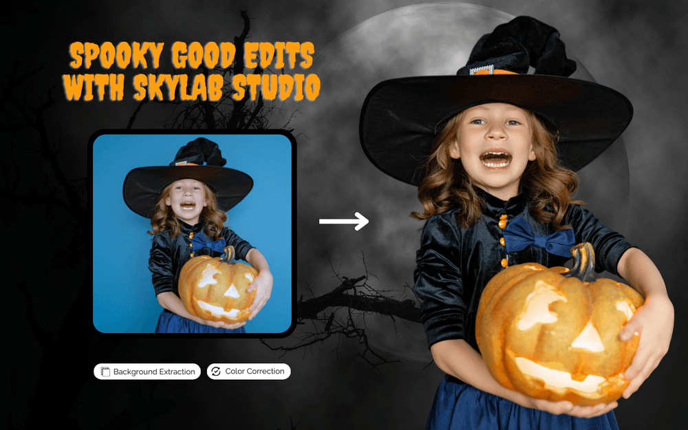 The beauty of Skylab Studio’s AI-powered tools is their ability to automate the hard work. Rather than spending hours manually correcting ghosting, our Extraction Tool for photographers does it in a fraction of the time. Just upload your images, select the tool, and let Skylab’s AI handle the rest. Whether you’re capturing shots at a Halloween photoshoot or portraits of your kids trick-or-treating, you can trust that Skylab will remove unwanted distractions without losing the spooky vibe of the season.